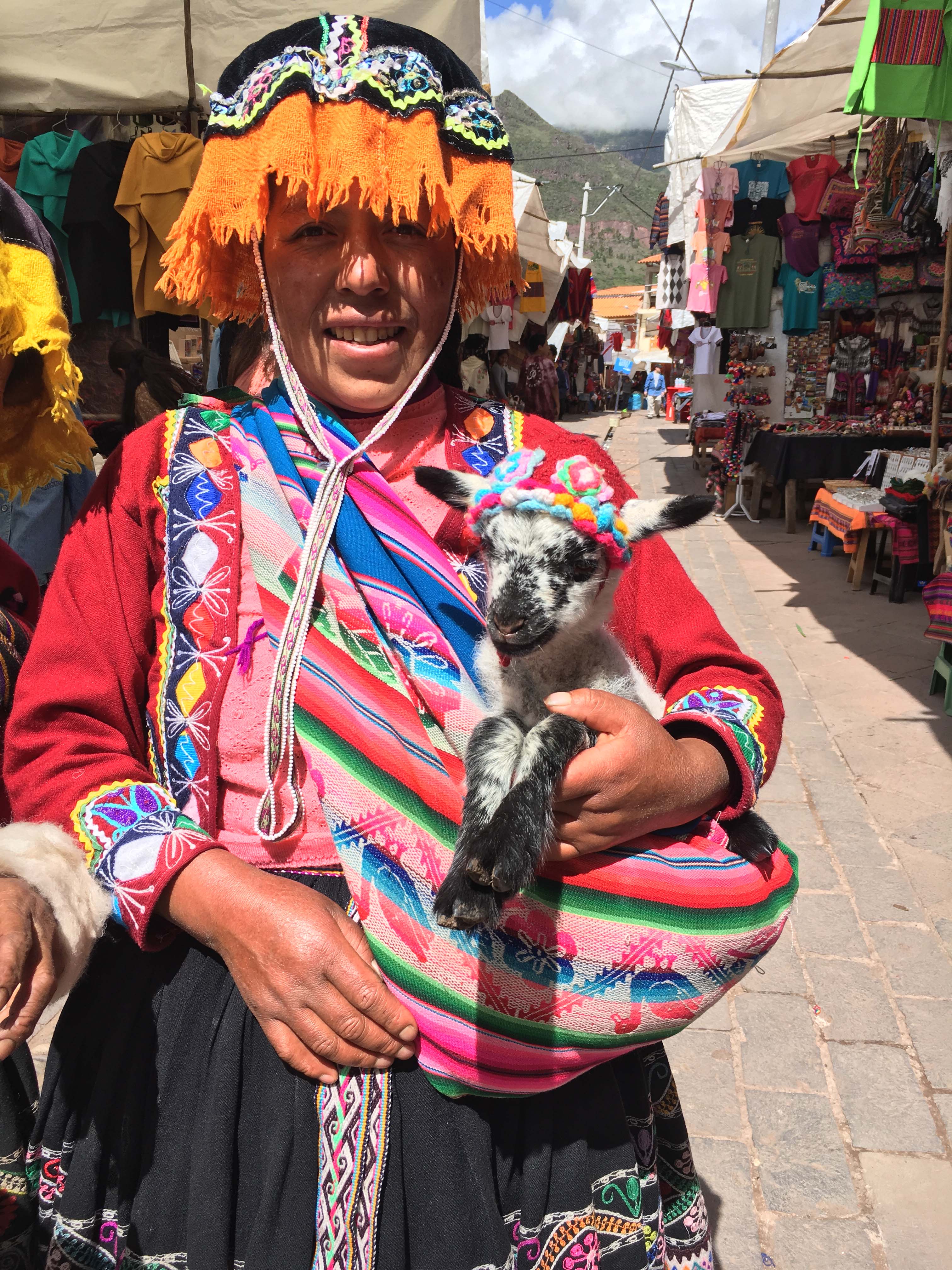 Woman offering opportunity to take a picture of her llama.