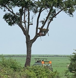 Leopard in tree & vehicle