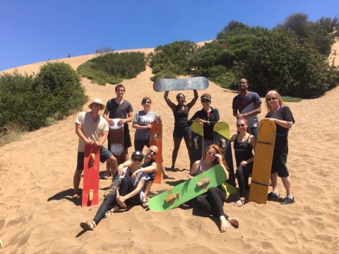 Pangeans sandboarding in Concon, Chile